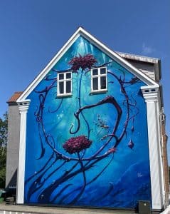 11. june 2025 saw the inauguration of a new gable mural in Skive, the third in the series “Nature in the city”. It was created by Michael Wisniewski from Murværk.dk on the west gable of the Havnevej 7 property.